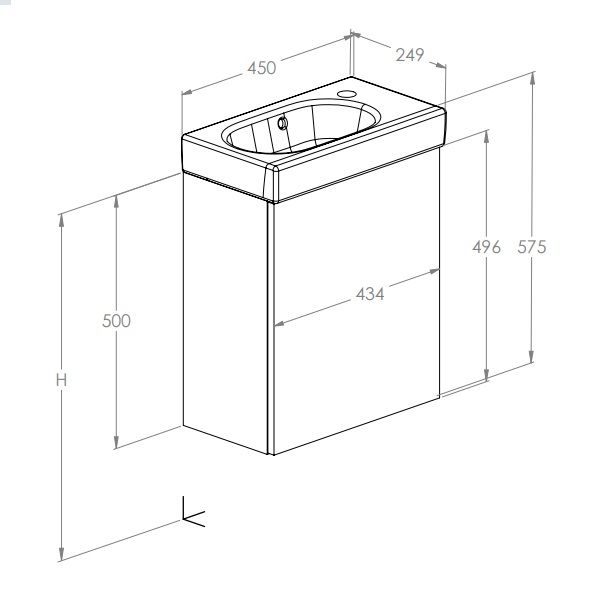 Практичното и компактно решение за малки бани и гостни тоалетни, UNIK MINI мебел с умивалник съчетава функционалност с модерен дизайн. Шкафът с една врата предлага, но удобно място за съхранение на основни аксесоари за баня. Има следните характеристики:
