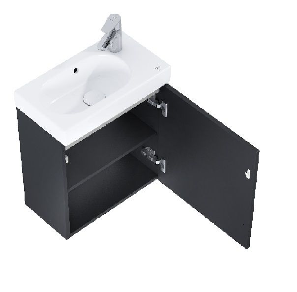 Практичното и компактно решение за малки бани и гостни тоалетни, UNIK MINI мебел с умивалник съчетава функционалност с модерен дизайн. Шкафът с една врата предлага, но удобно място за съхранение на основни аксесоари за баня. Има следните характеристики: