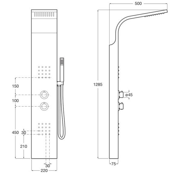 Термостатична, хидромасажна душ-колона ESSENTIAL от испанския производител Roca е един от най-добрите варианти да се насладите на релаксиращ или възстановяващ душ в кофорта на собствения си дом. Атрактивния дизайн с изчистени линии и различни възможности за контрол на температурата и водния поток правят колоната ESSENTIAL практично и елегантно решение за всяко душ пространство. Размери 220 x 500 x 1285 mm