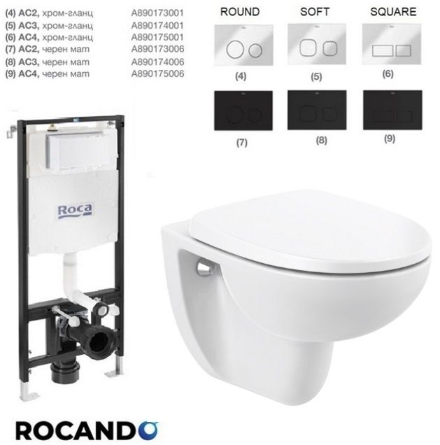Специално предложение от Roca за комплект от стенна тоалетна без ръб с кръгла форма, седалка и..