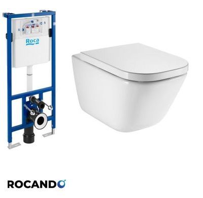 Промоционален комплект на Roca, който включва стенна тоалетна Roca GAP RIMLESS, седалка и капак.