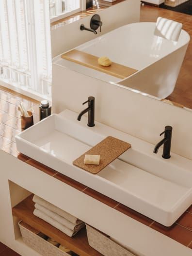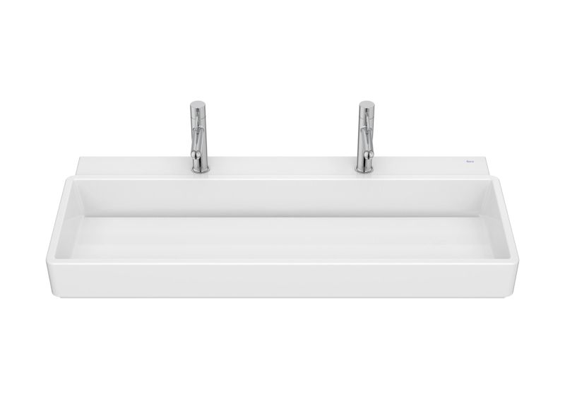 Умивалник с два отвора за смесител и голямо корито TURA от испанския производител Roca. Подходящ както за стенен монтаж, така и за монтаж върху плот, този умивалник предоставя впечатляващо голям басейн благодарение на технологията за тънки стени, които комбинират тънкостенен порцелан с високо качество и издръжливост.