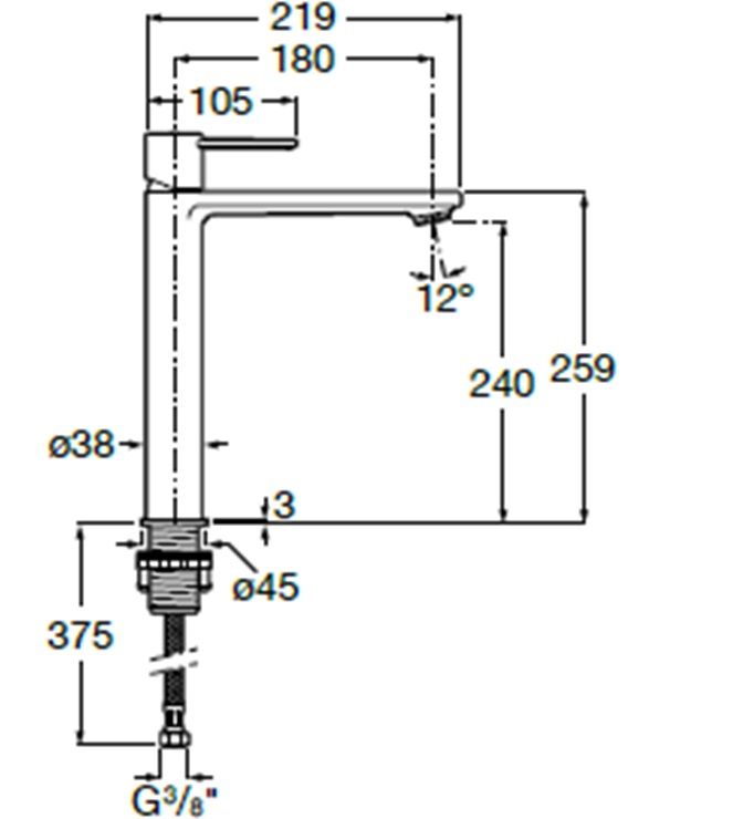 TARGA Висок смесител за умивалник ХРОМ МАТ