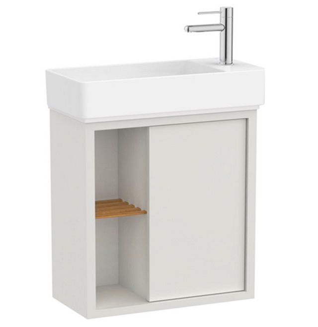 Roca представя елегантно решение на малък мебел с умивалник, широк 55 см в оригинален цвят бял мат