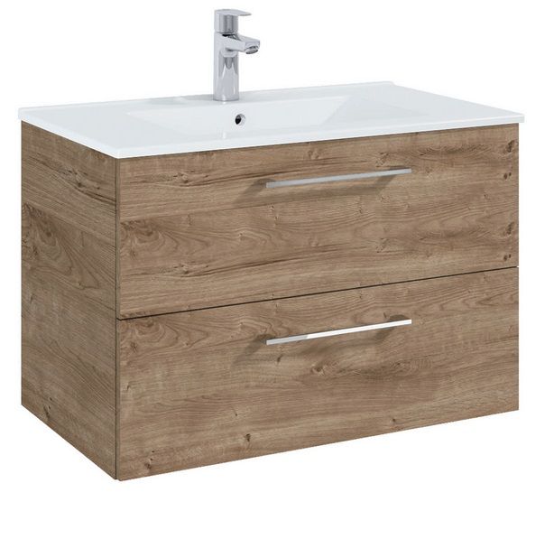 ROCA KWADRO Unik 80см Дъб Мебел с две чекмеджета и умивалник дръжките се поръчват отделно