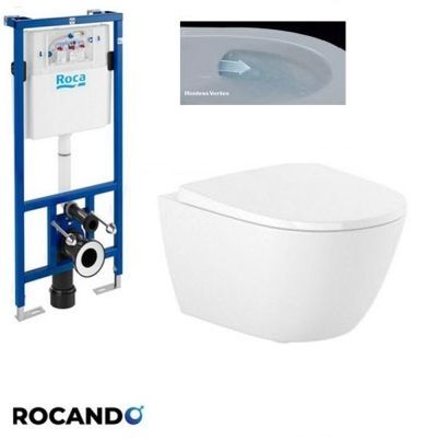 ONA VORTEX Rimless е най-новото предложение на Roca за промоционален комплект включващ стенна тоалетна с полузакрито безръбово отмиване, компактна структура за вграждане DUPLO с дебелина 13 см и капак с плавно затваряне SUPRALIT®.