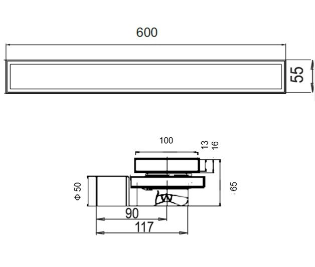Размери: 600*55 mm Дълбочина: 75 mm обща за комплекта