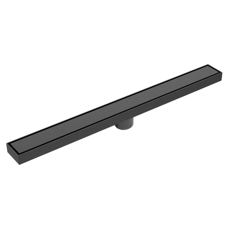 Подов линеен сифон с клапан против миризми от неръждаема полирана стомана в цвят ЧЕРЕН МАТ.
