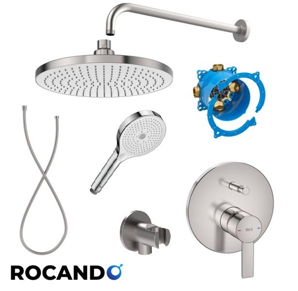 Душ-система за вграждане от Roca, изпълнена със смесител TARGA Round и душ пита RAINSENSE Ф 230..