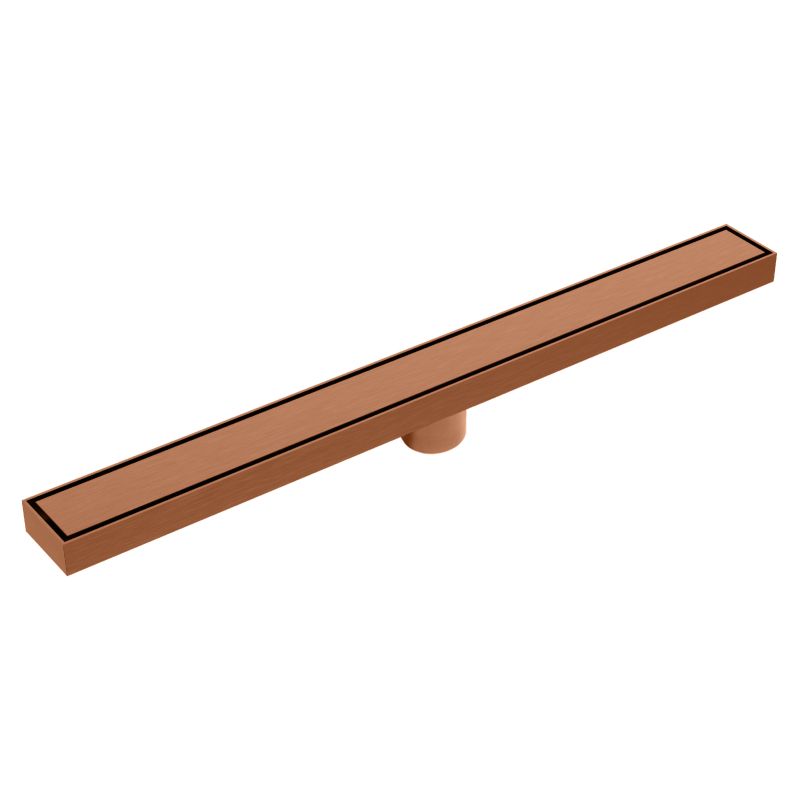 Подов линеен сифон с клапан против миризми от неръждаема полирана стомана в цвят РОЗОВО ЗЛАТО МАТ.