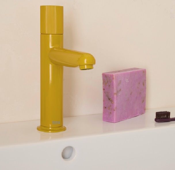 NU Смесител за умивалник с ръкохватка STRIPES в цвят Honey Yellow, с гланцов корпус, без клапа