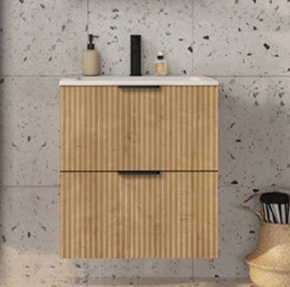 Roca REEF 60 мебел за баня с умивалник дървен фурнир с релефни чекмеджета
