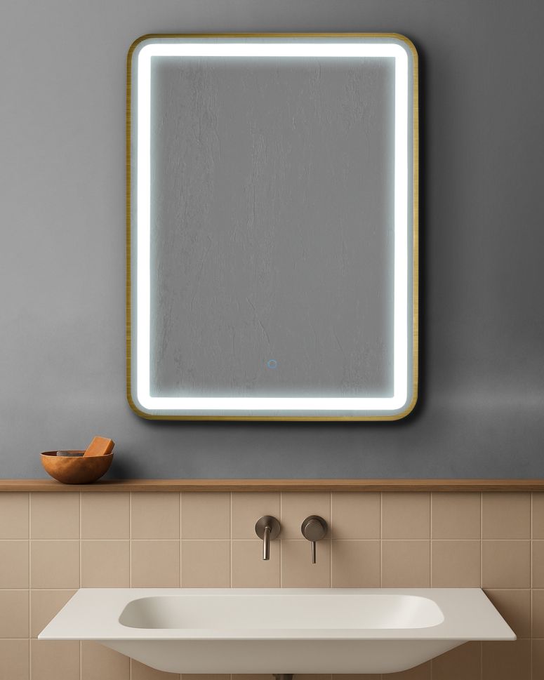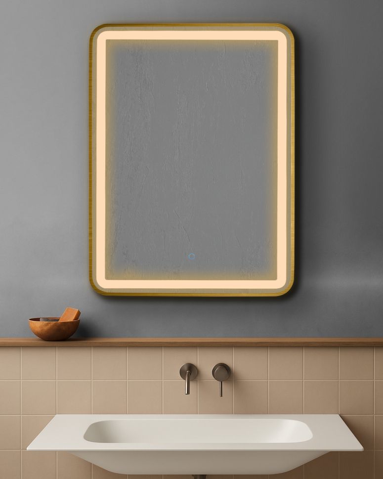 AURA SQ правоъгълно огледало 60х80см с осветелние и ЗЛАТО МАТ рамка