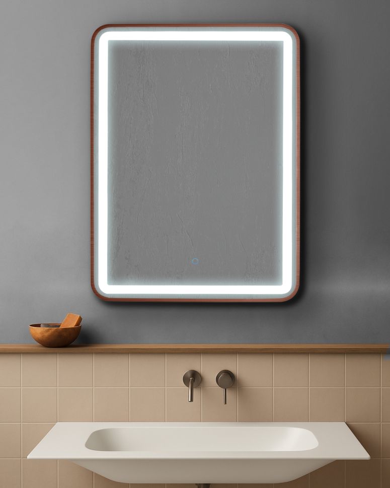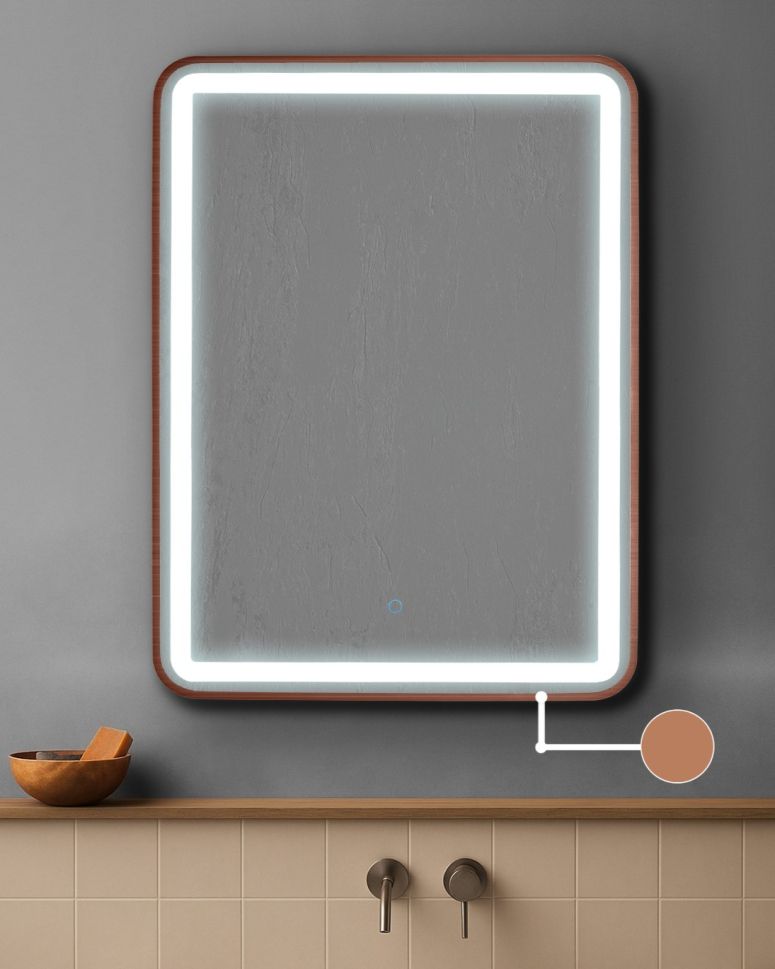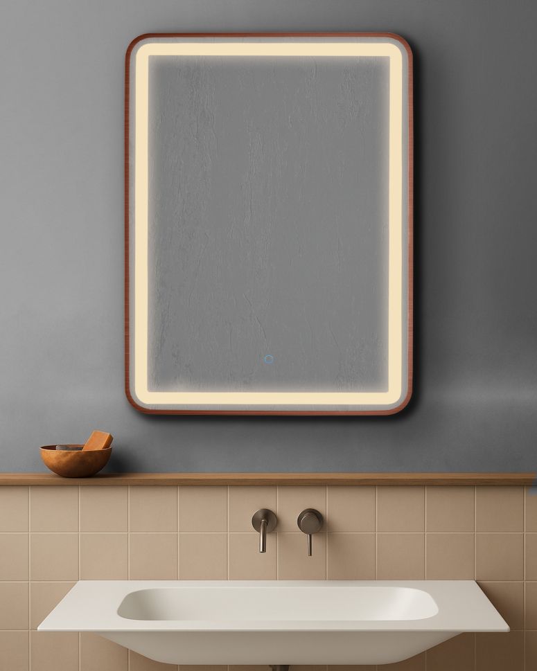 AURA SQ правоъгълно огледало 60х80см с осветелние и РОЗОВО ЗЛАТО МАТ рамка