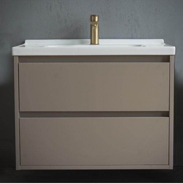 Долният шкаф разполага с две просторни чекмеджета с плавно затваряне за удобна организация на тоалетни принадлежности, а върху него е монтирана стилна и лесна за почистване керамична мивка, която гарантира хигиена и издръжливост при ежедневно натоварване.
