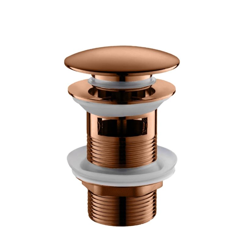 Клик-клапан LOTUS е универсален за умивалници с преливник, покритие Rose Gold Matt. Съвместим с умивалници и бидета по стандартни размери за европейския пазар.