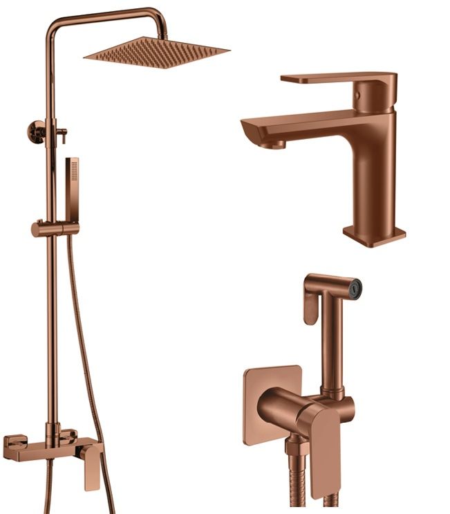 Комплект смесители LOTUS ROSE GOLD душ-колона