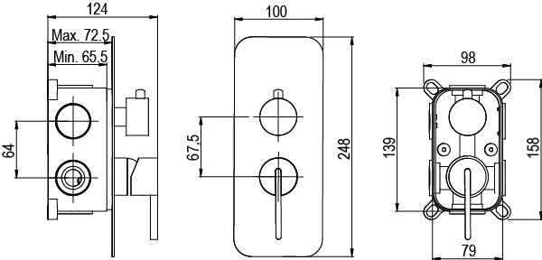 URBAN FLOW двупътна душ-система за вграждане с ръкохватка, цвят DARK GREY