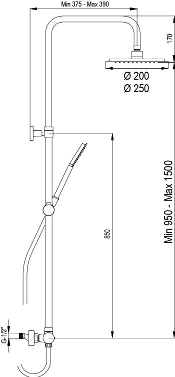 URBAN FLOW двупътна душ-колона с ръкохватка, цвят DARK GREY