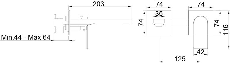 ALPHA едноръковхатков вграден смесител за умивалник, цвят DARK GREY