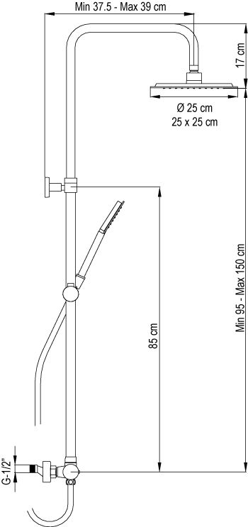 ALPHA трипътна душ-колона с ръкохватка, цвят DARK GREY