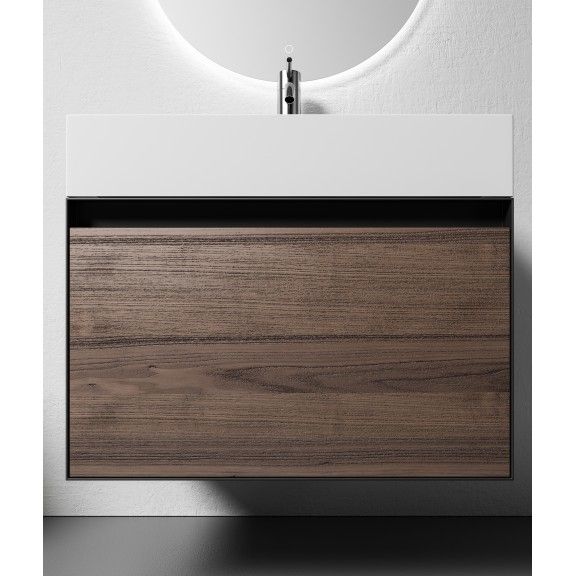 Мебел за баня от дървена композитна плоскост и конструкция от алуминиева рамка.