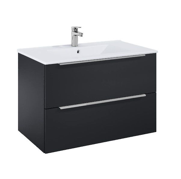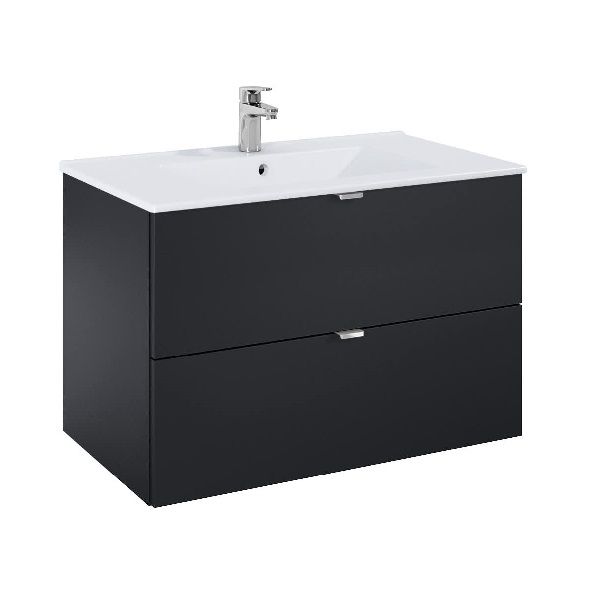 Начало МЕБЕЛИ ROCA ELEGANT PLUS МДФ мебел с две чекмеджета и умивалник 813мм цвят Черен Мат дръжките се поръчват отделно