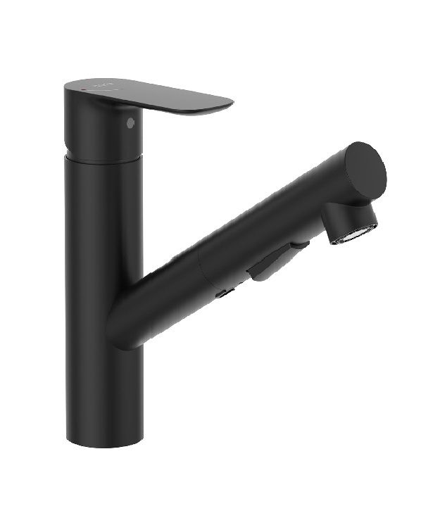 ROCA CALA Cold Start Смесител за кухненска мивка с въртящ и изваждащ се чучур с 2 функции черен мат