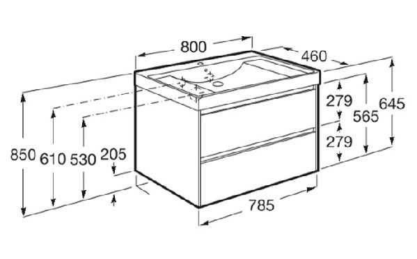 Естествена като природата, Ona отдава почит на разнообразните форми на Средиземноморието. Тя е функционална, без изобщо да изглежда студена, с ясна естетика, която следва присъщата топлина на естествената среда, създадена за тези, които се наслаждават на силата на тихите пейзажи. BasinShapeUnik: Square Базов модул / Вътрешни разделители Базов модул / Комбинация врати и чекмеджета: 2 чекмеджета Базов модул / Система за отваряне и затваряне: Чекмеджета с плавно затваряне Базов модул / Структура: Чекмеджета Вид монтаж: За стенен монтаж Материал / Мебел: MDF Материал / Умивалник: FINECERAMIC ® Монтаж на смесителна батерия: На умивалника Позиция на умивалника: Централно Размери / Умивалник и мебел / Височина (мм): 645 Размери / Умивалник и мебел / Дължина (мм): 800 Размери / Умивалник и мебел / Ширина (мм): 460 Умивалник / Интегриран плот Умивалник / Отвори за смесителна батерия: 1 отвор в средата Умивалник / Положение на плота: От двете страни Гаранция от Roca: 2г.за мебелите и 10г.за керамиката