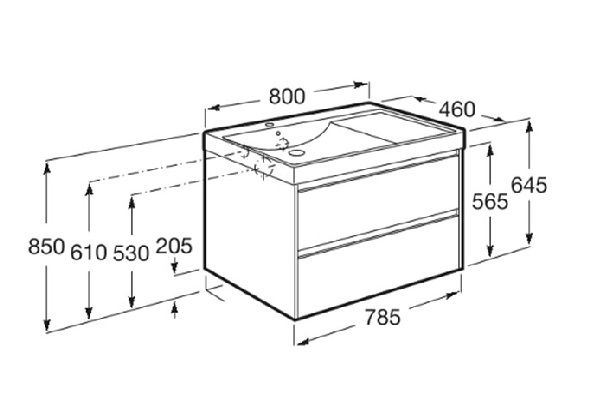 Размери / Умивалник и мебел / Дължина (мм): 800
