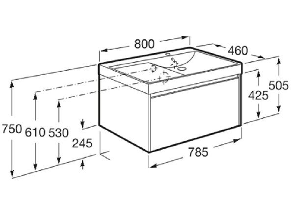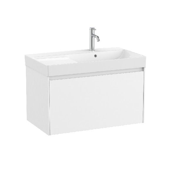 ROCA ONA 80 Мебел Unik с едно чекмеджета и асиметричен умивалник Бял Мат