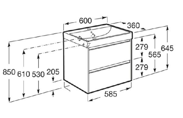 Размери / Умивалник и мебел / Дължина (мм): 600