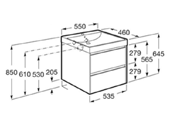 ROCA ONA 55 Мебел Unik с две чекмеджета и умивалник Бял Мат A851687509