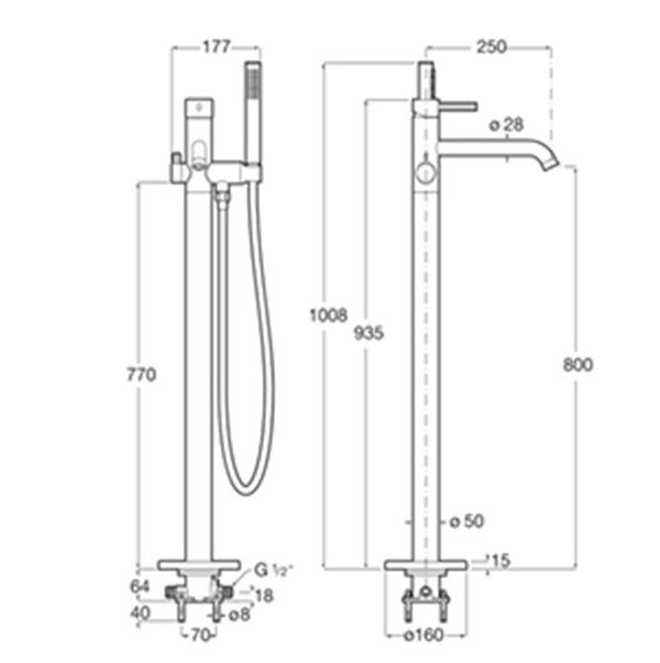ROCA ONA Стоящ смесител за вана от под Titanium Black