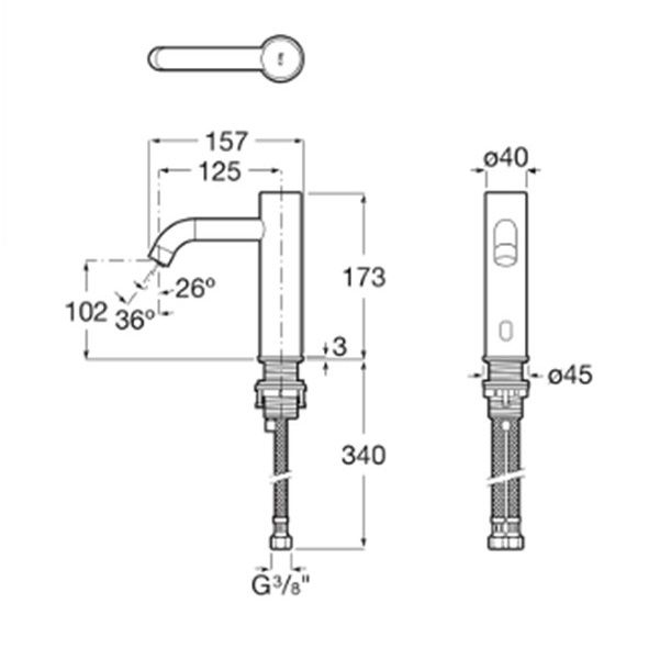 ROCA ONA Електронен смесител за умивалник със захранване с 4 алкални батерии 1,5 V хром