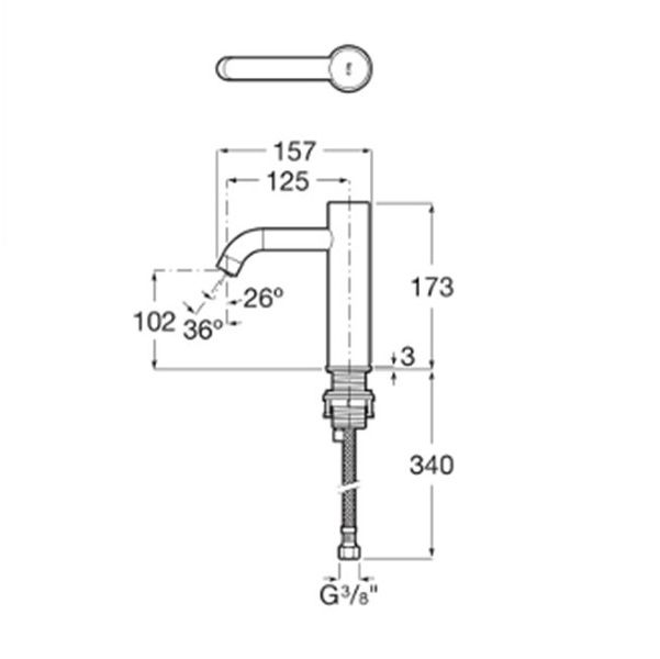 ROCA ONA Електронен смесител за умивалник със захранване с 4 алкални батерии 1,5 V хром Студена или предварително смесена вода