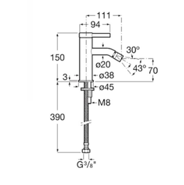 Смесителят за биде, разработен в колекцията има следните характеристики:
