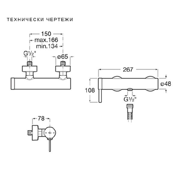 ROCA ONA Стенен смесител за душ Черен Мат A5A219ENB0