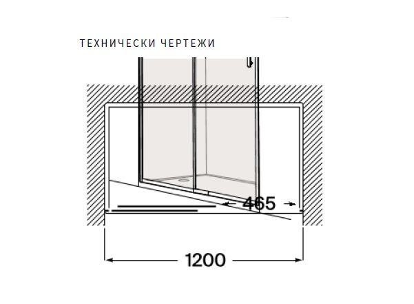 предназначено за монтаж в ниша или между стени. Изработен е от закалено стъкло с дебелина 6 мм