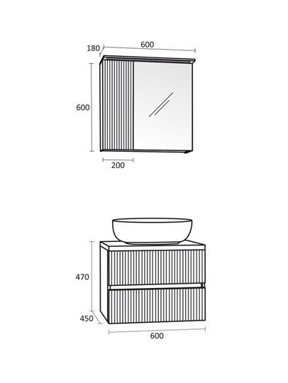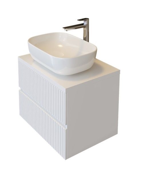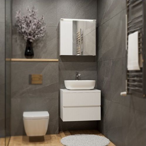 Стилен шкаф за баня с модерен фрезован дизайн от вертикални линии, който придава характер на пространството.